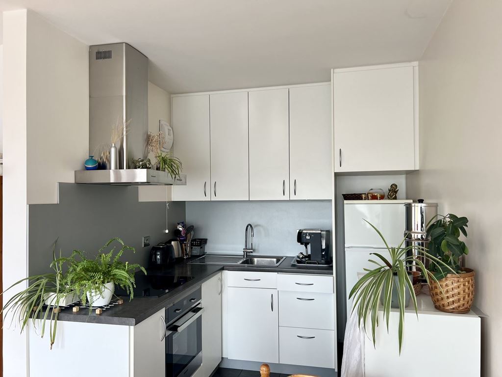 Lumineux, 40m² env, séjour avec canapé convertible, terrasse bien exposée, chambre en mezzanine, cuisine équipée avec lave vaisselle, frigo, plaque de cuisson, four micro-onde, machine à café Nespresso